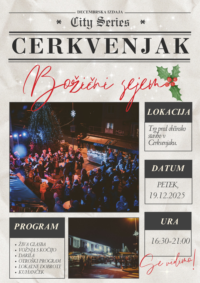 Tradicionalni Božični sejem na trgu v Občini Cerkvenjak se vrača tudi letos! Dogodek, ki že vrsto let povezuje lokalno skupnost, bo znova napolnil trg z zimskimi vonjavami, otroškim nasmehom in prazničnim razpoloženjem.